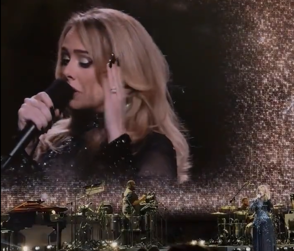 Într-un video postat pe X, artista poate fi văzută cântând celebra sa piesă Someone Like You, în timp ce gesticulează și își arată inelul impresionant.
