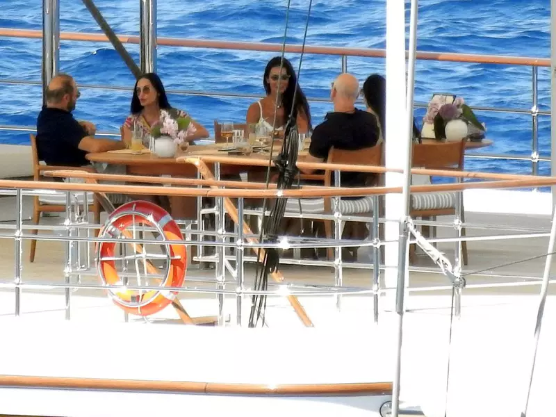 Ulterior, actrița și cuplul au fost văzuți luând prânzul cu Jeff Bezos, în vârstă de 59 de ani, și logodnica acestuia, Lauren Sanchez, de 53 de ani, în timpul escapadei lor. Prânzul a avut loc pe superyacht-ul de 500 de milioane de dolari al fondatorului Amazon.