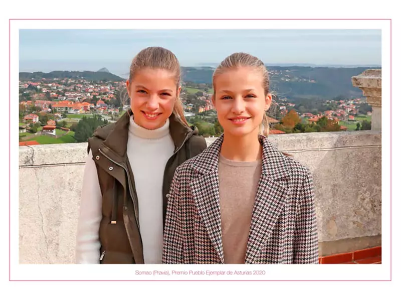 Vedetele felicitării de Crăciun au fost anul acesta cele două fiice ale cuplului regal, Prințesa Leonor, 15 ani, și Prințesa Sofia, 13 ani. Poza cu cele două a fost surprinsă în timpul unei vacanțe în nordul Spaniei, în luna noiembrie a acestui an.