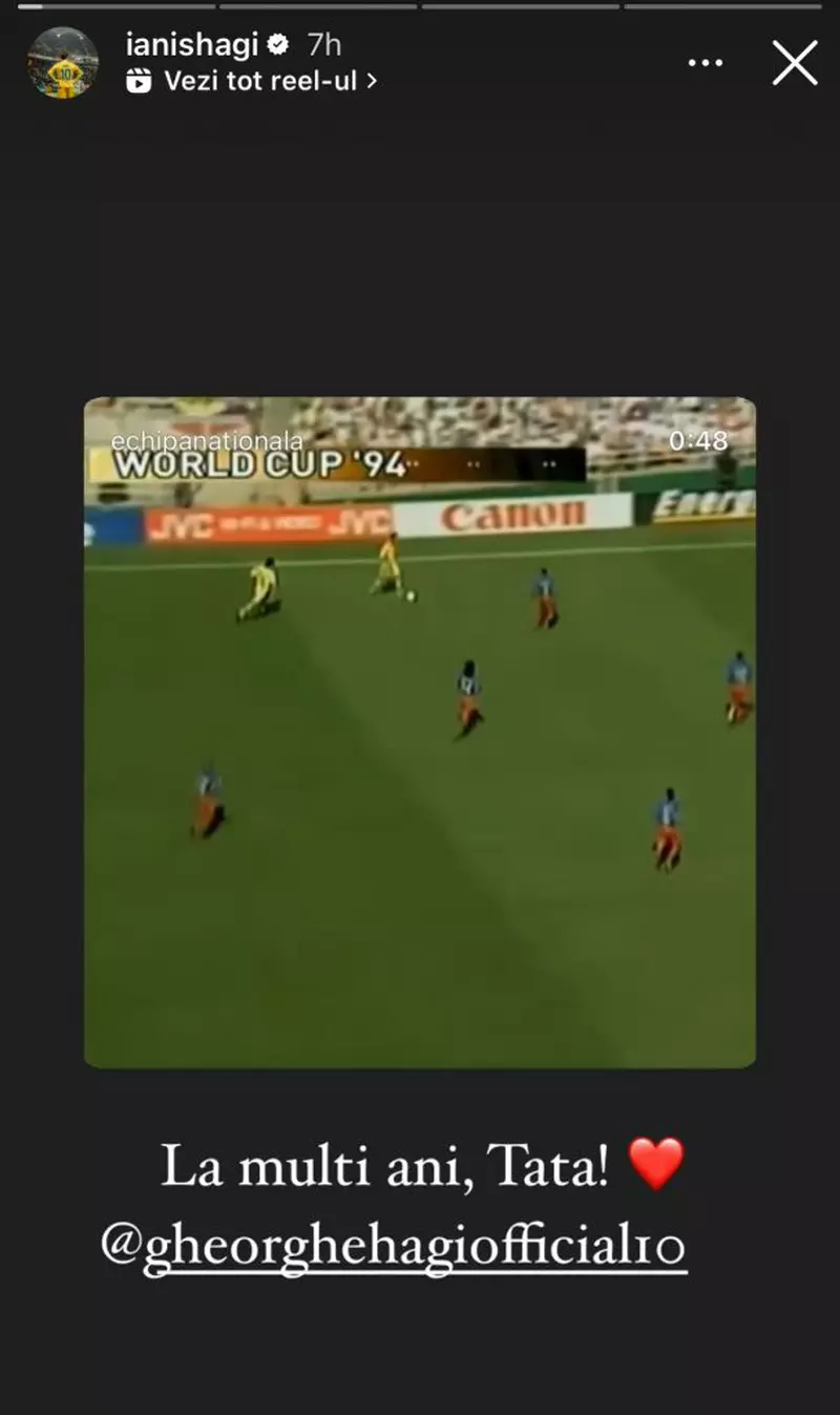 Ianis Hagi a ales și el urări simple pentru a-și felicita tatăl în ziua aniversară: „La mulți ani, Tata”. Pe rețelele sociale, Ianis a adăugat și un emoji cu o inimă roșie pentru a-și exprima afecțiunea.
