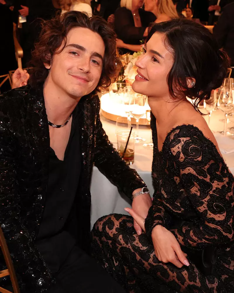 Actorul, care a fost nominalizat la categoria „Cea mai bună interpretare masculină într-un film muzical sau comedie” pentru filmul Wonka, s-a ținut de mână cu iubita sa de 26 de ani, în timp ce au ajuns târziu la ceremonie și au fost poftiți înăuntru. Kylie a arătat elegant într-o rochie neagră fără spate din paiete și dantelă, cu un machiaj radiant, în timp ce Timothee a purtat un costum negru cu paiete.