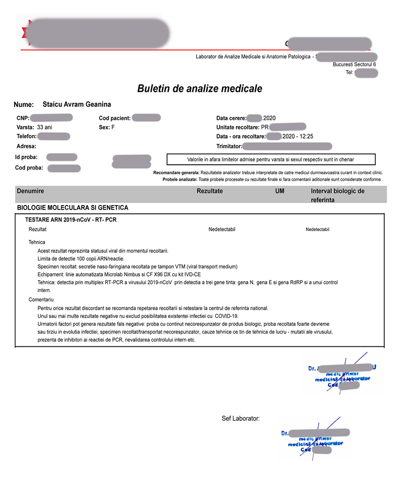 A urmat apoi o cursă cu obstacole între telefoane la DSP, controlul zilnic al poliției locale, carantinare pentru soțul și copiii mei, izolare pentru mine. Îmi sărea inima din piept când vedeam pe ecranul telefonului apel de la un număr de fix. Știam că fie e DSP-ul, fie ambulanța. Pe scurt a fost o perioadă extrem de grea pentru mine, iar moralul meu a fost la pământ. Nu am vrut atunci să spun nimănui.”