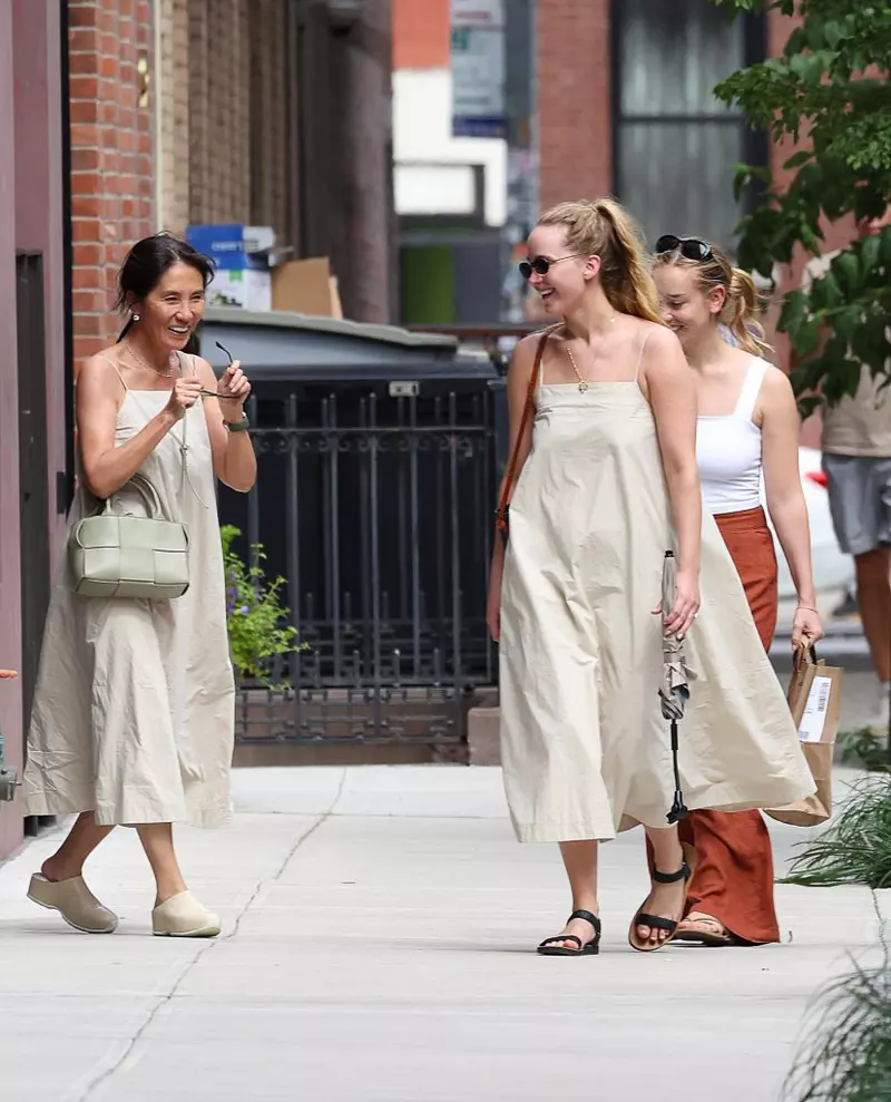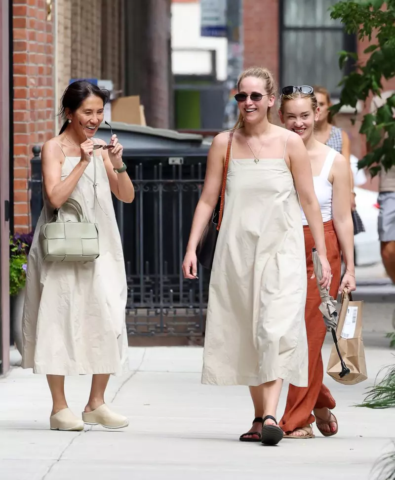 În timp ce se plimba pe străzile din New York, actrița din „Hunger Games” a avut parte de o surpriză neașteptată. O femeie, care se întâmpla să treacă fix prin fața ei pe stradă, purta o rochie similară cu cea a vedetei. Actrița, în vârstă de 31 de ani, a asortat rochia cu bretele de culoare bej cu sandale de la The Row și o geantă Trademark, în timp ce „geamăna ei' în modă a arătat la fel de șic cu geanta Bottega Veneta și saboți.