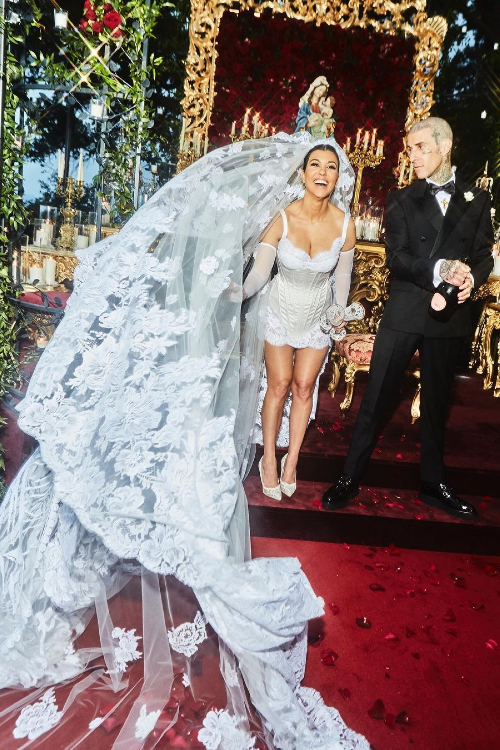 Kourtney Kardashian și Travis Barker, nuntă fabuloasă în Italia. Imagini cu rochia de mireasă purtată de vedetă