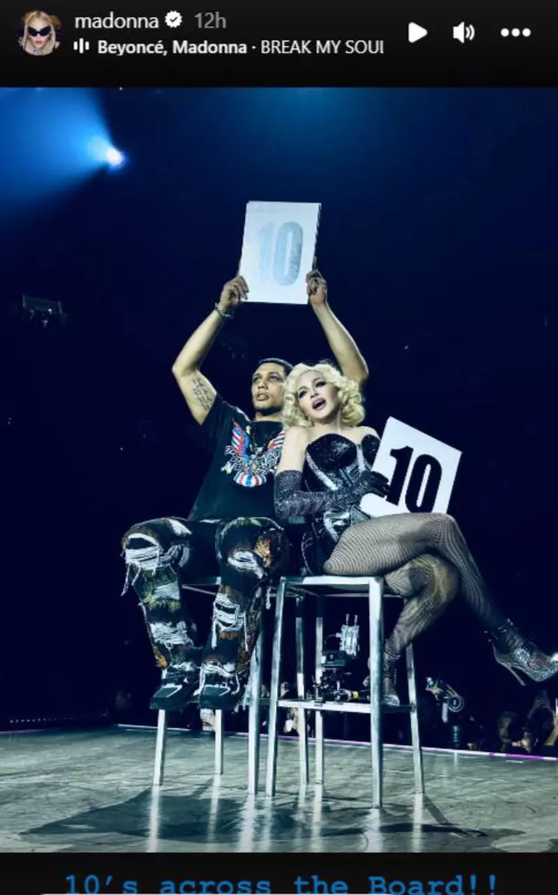 Se pare că relația dintre Madonna și Josh Popper devine din ce în ce mai serioasă. În cadrul unui concert susținut în Brooklyn, regina muzicii pop l-a chemat pe scenă pe iubitul său în vârstă de 29 de ani. Cei doi s-au distrat de minune împreună, jurizând mișcările dansatorilor, care au oferit un show pe cinste pe celebra piesă Vogue. La un moment dat, spre deliciul publicului, artista în vârstă de 65 de ani l-a sărutat pe obraz pe Popper.