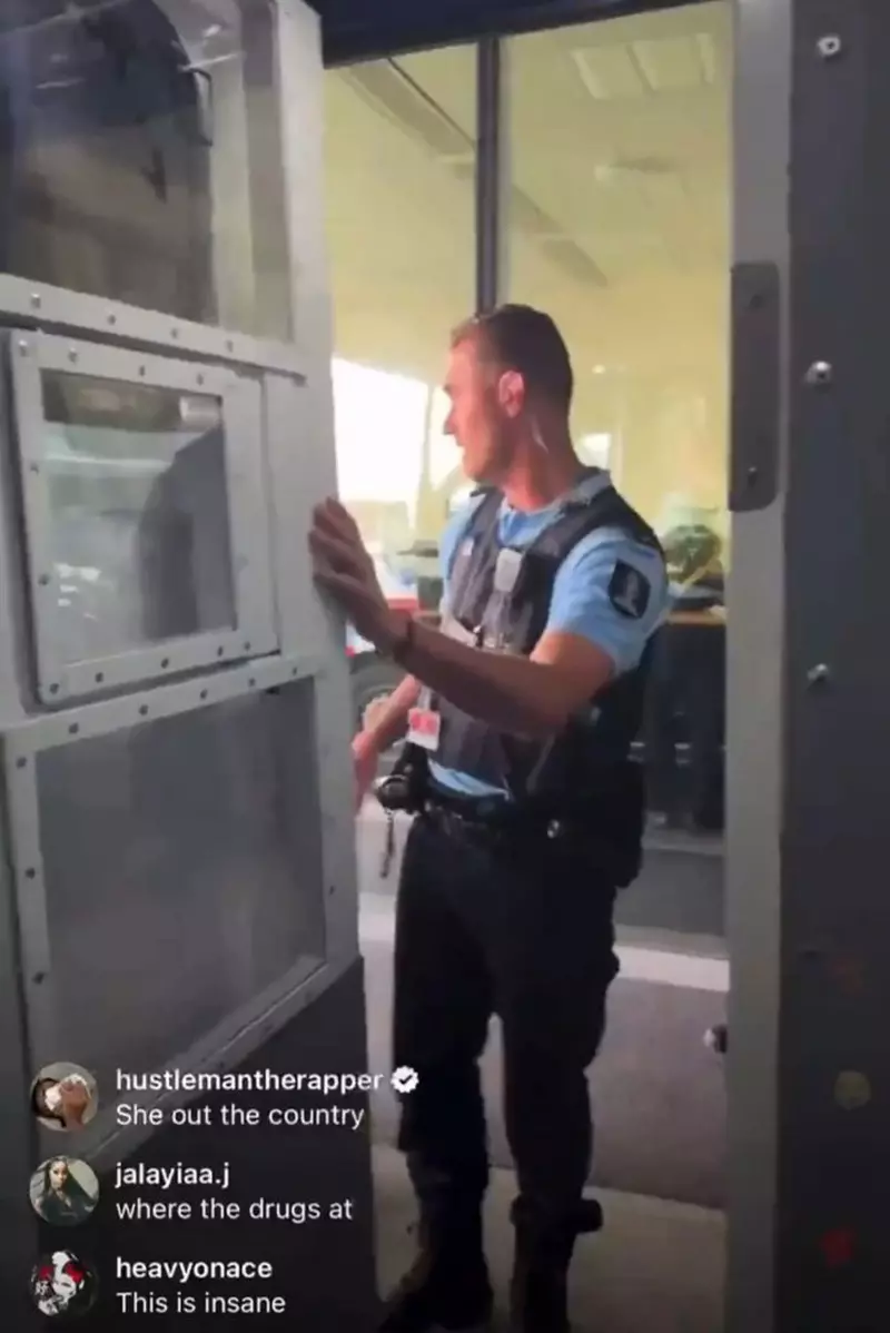 Într-o altă înregistrare video, un oficial îi spune lui Minaj că toate bagajele ei trebuie să fie percheziționate, deoarece suspectează că ar avea asupra ei mai multe droguri.