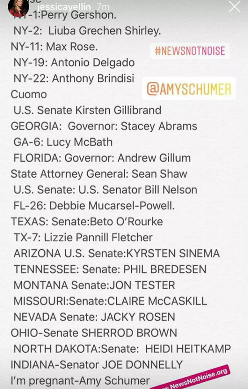 Amy i-a direcționat pe fanii de pe Instagram pe contul prietenei sale, postând o fotografie editată cu fața ei și a lui Chris pe corpurile Prințului Harry și lui Meghan Markle. Schumer a scris „Sunt pe cale să fac un anunț pe pagina lui @jessicayellin. Vă rog să o urmăriți pentru că în orice minut vă va spune ce se întâmplă. Urmăriți-o și mergeți la vot!”.