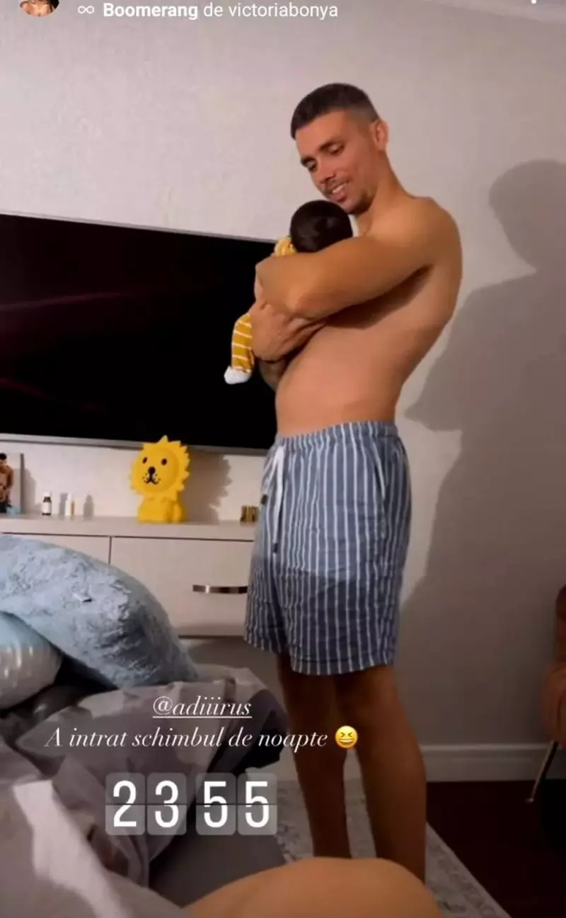 „A intrat schimbul de noapte.”, a scris Vlăduța Lupău pe Instastory, în dreptul unei imagini cu Adi Rus și cu fiul lor.