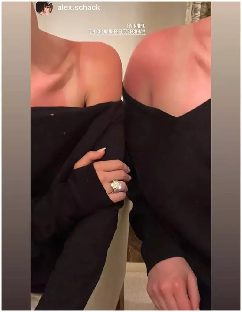 Nicola Peltz a purtat la nuntă doar inelul deja cunoscut și a ținut accesorizarea la minimum, arătând de-a dreptul splendid în rochia de mireasă realizată de casa Valentino, căreia i-a alăturat o pereche de mănuși lungi, din dantelă. În schimb, Victoria Beckham a afișat pentru această ocazie un diamant spectaculos, de 21,5 carate, purtat ca pandantiv, un cadou de la soțul ei cu ocazia botezului lui Brooklyn, cu mulți ani în urmă.