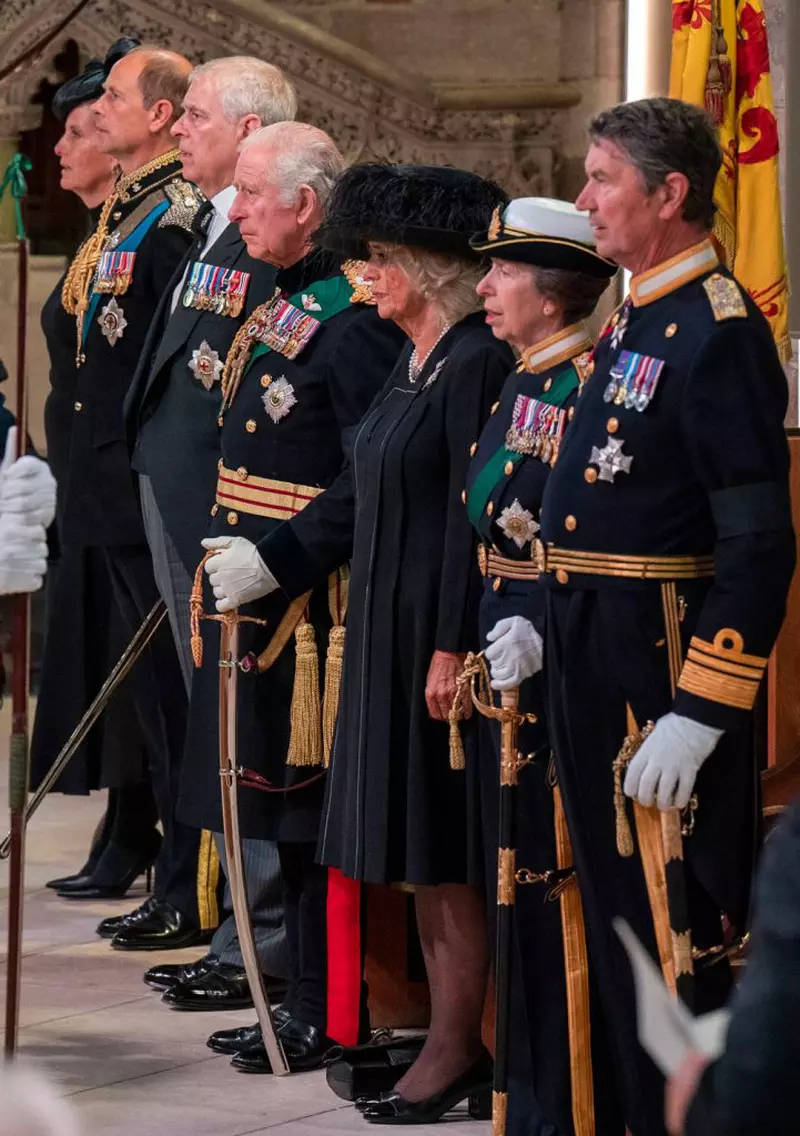 În timpul ceremoniei, numit Privegherea Prinților, Regele Charles a III-lea, Prințesa Anne, Prințul Andrew și Prințul Edward au păzit sicriul mamei lor. Chiar dacă Regele Charles, care purta un kilt scoțian, s-a aflat în fruntea sicriului, Prințesa Anne a fost cea care a reușit să scrie istorie, devenind prima femeie din familia regală care a luat parte la această ceremonie.