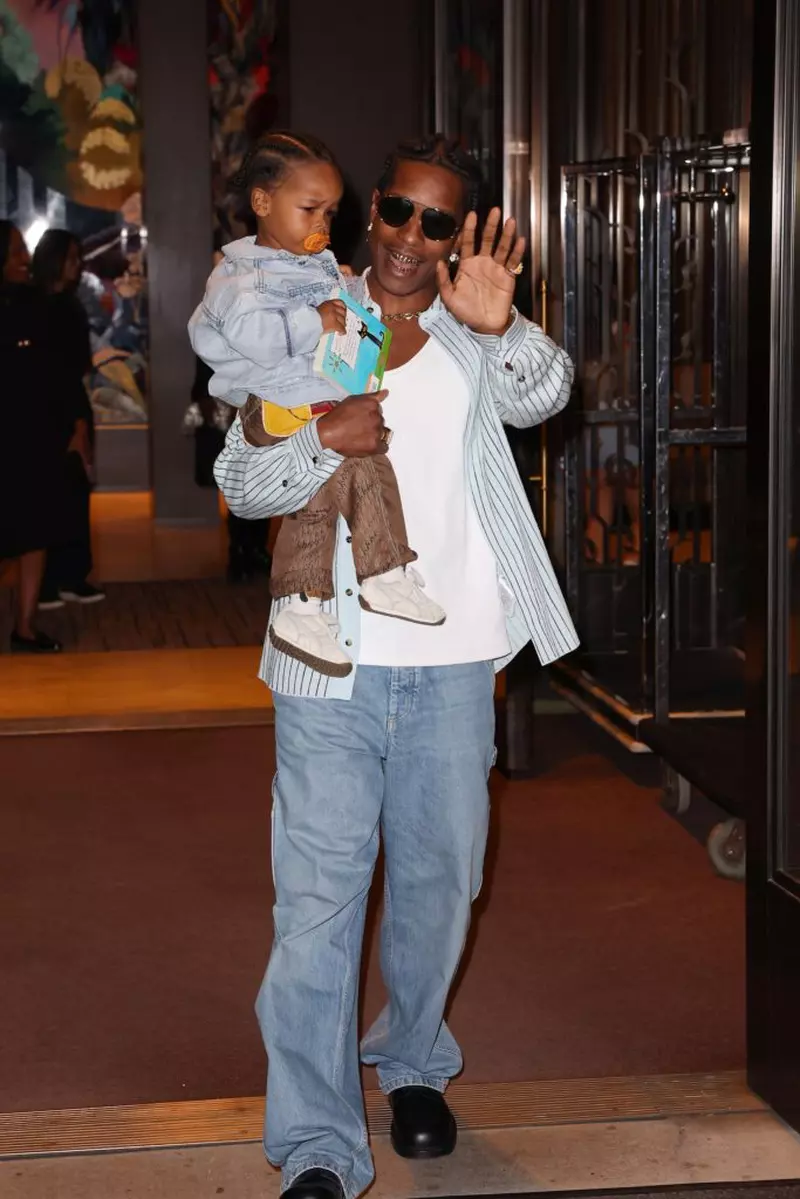 A$AP Rocky, al cărui nume real este Rakim Mayers, a părut, de asemenea, să fie bine dispus, zâmbind și salutând fanii cu RZA în brațe. El și-a păstrat look-ul casual cu jeans, un tricou alb și o jachetă cu nasturi în dungi. El a adăugat pantofi negri eleganți, ochelari de soare aviator, un colier auriu și cercei cu capse pentru a-și completa ținuta. Băieții lor au arătat, de asemenea, elegant în jachete din denim asortate. RZA a purtat o pereche de pantaloni maro și pantofi sport albi, iar Riot a purtat pantaloni scurți din denim, un tricou gri și pantofi maro.