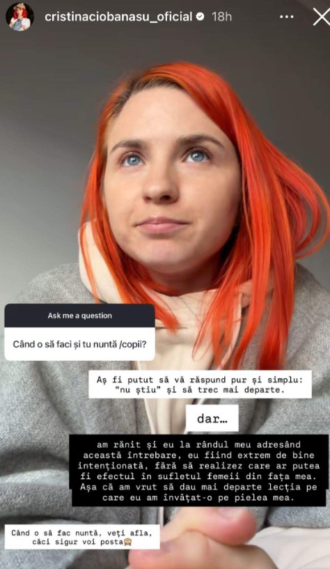 Răspunsul pertinent dat de Cristina Ciobănașu celor care o întreabă când se căsătorește și face un copil: „Exemple prin care poți răni o femeie…”
