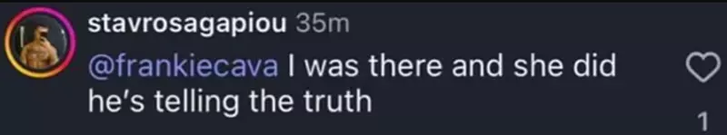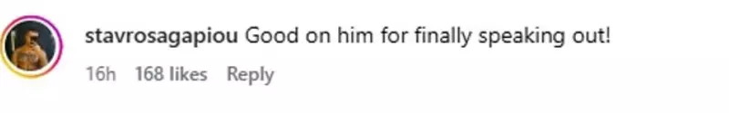 „Am fost acolo și a făcut asta, spune adevărul,” a scris el într-un comentariu pe Instagram, care ulterior a fost șters, fiind înlocuit de postarea: „Bravo lui că în sfârșit a vorbit!”