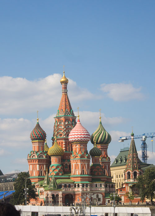 Piata Rosie, inconjurata de macaralele care vestesc Cupa Mondiala de Fotbal din Moscova (2018)