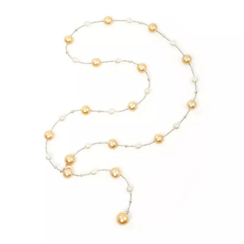 Colierul CASIANI PERLA cu Perle baroc este o bijuterie elegantă și stylish. Este realizat în aur alb de 18k în care sunt montate perle naturale albe și galbene totalizând 329.4 ct.