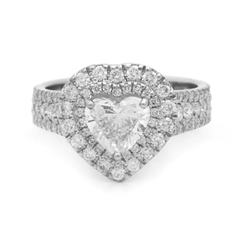 Inelul CASIANI DIAMONDS din aur alb de 18k este o bijuterie deosebită, elegantă, care cu siguranță se face remarcată. Prezintă ca și piatră centrală un diamant cu tăietura inimă (G/SI1 – cerificat GIA) de 1.01 ct., alături de diamante albe cu tăietura rotundă însumând 1.0722 ct.