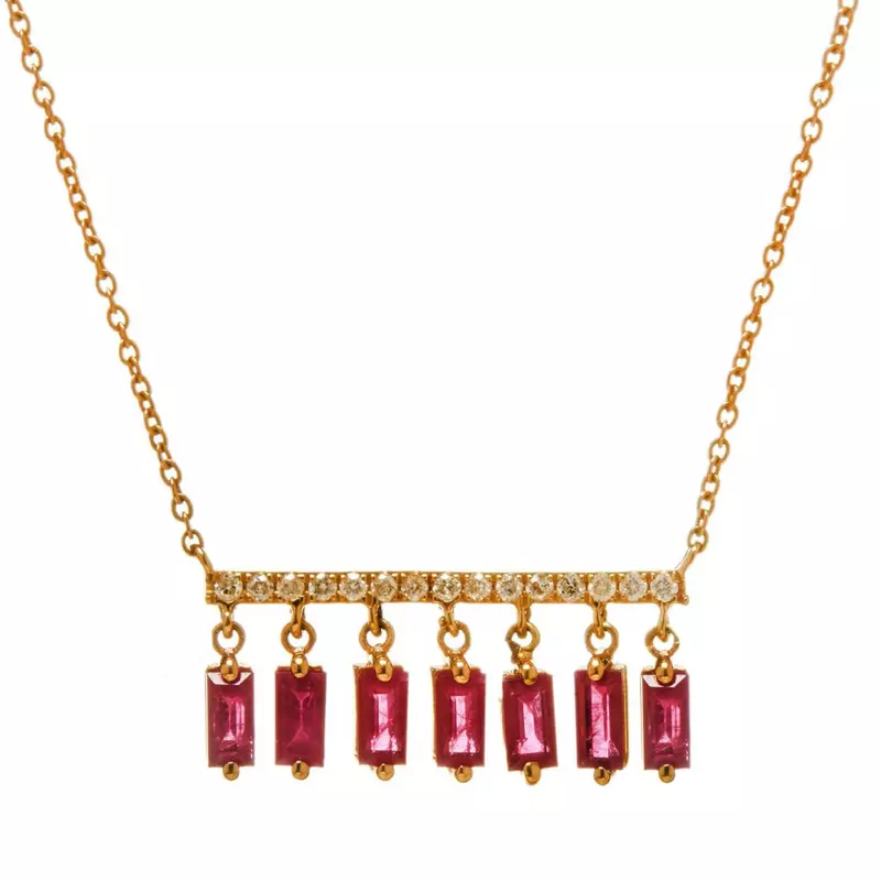 Cu un design aparte, Colierul CASIANI GEMMA este realizat în aur galben de 14k cu rubine și diamante.