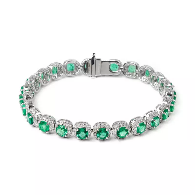 Brățara CASIANI TIMELESS cu Smaralde și Diamante este o bijuterie elegantă, remarcabilă, realizată în aur alb de 18k în care sunt montate smaralde cu tăietură rotundă (5 ct.) și diamante cu tăietură rotundă totalizând 1.275 ct.
