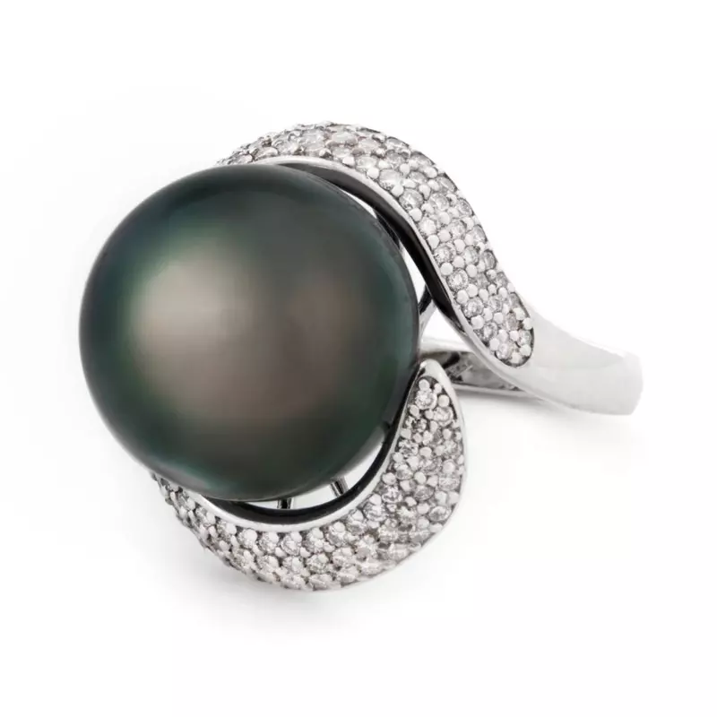Inelul CASIANI PERLA cu Perlă si Diamante din aur alb de 18k este o bijuterie cu adevărat impresionantă. Prezintă o perlă neagră (South Sea) spectaculoasă de 30.15 ct. și diamante albe însumând 0.986 ct.
